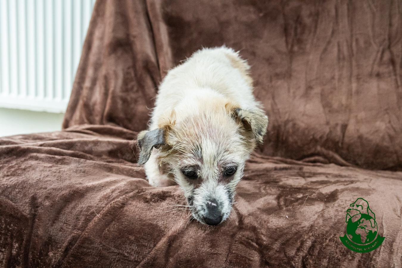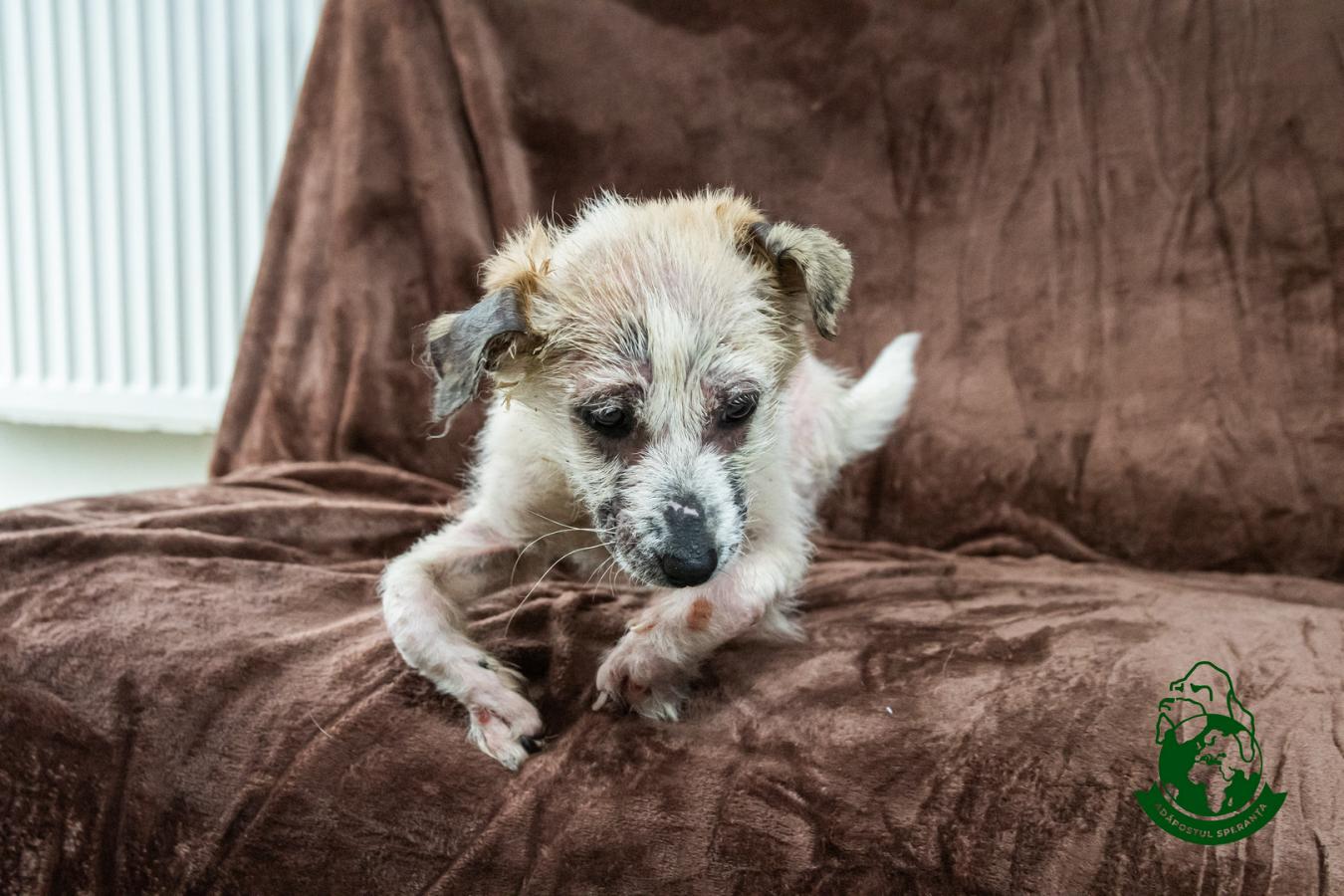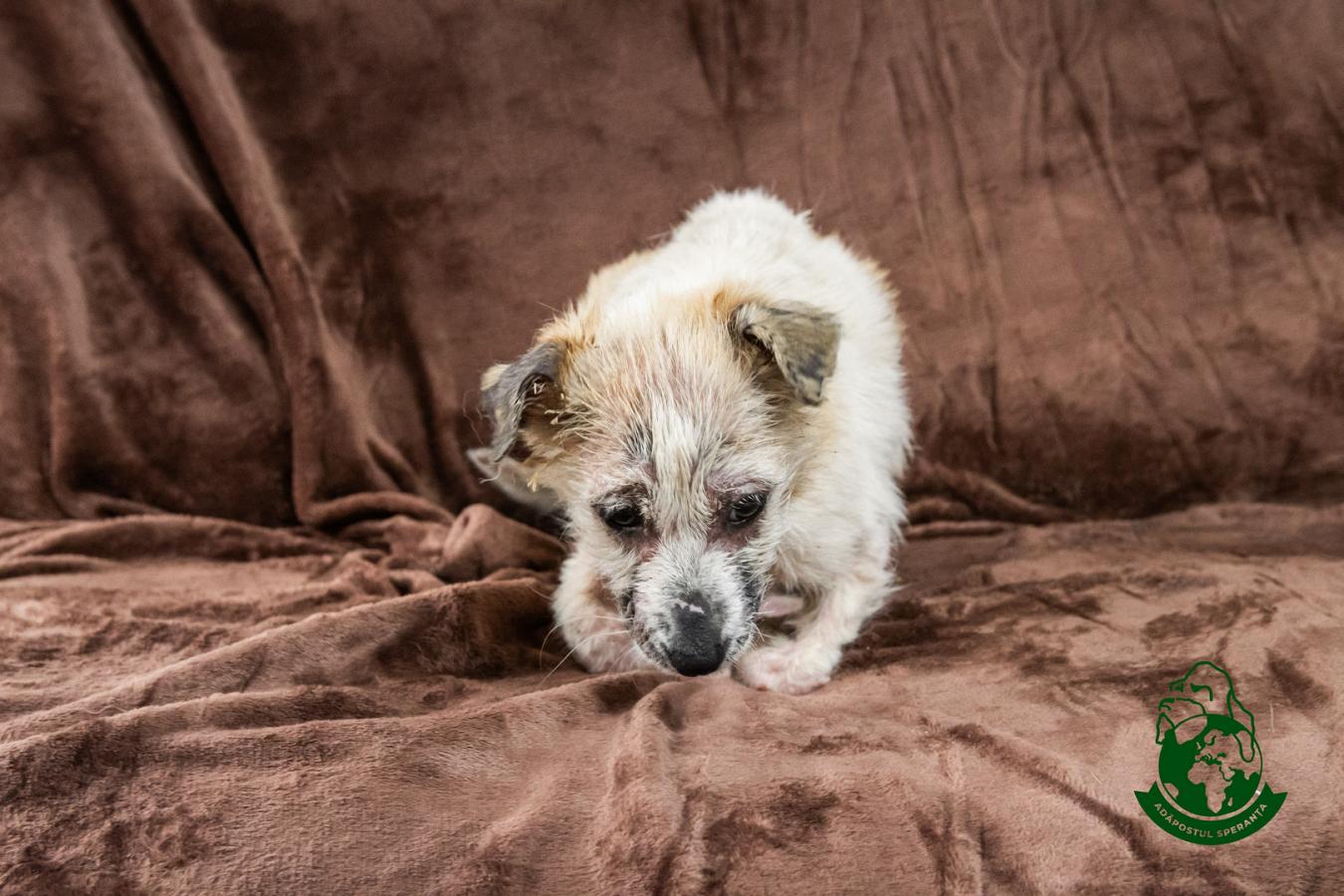 Ștefana este o cățelușă de câteva luni. Cel mai probabil s-a născut cu o malformație gravă la ambele membre anterioare, motiv pentru care nu poate merge normal. Un început de viață nedrept, dureros și greu de imaginat pentru un suflet atât de mic.