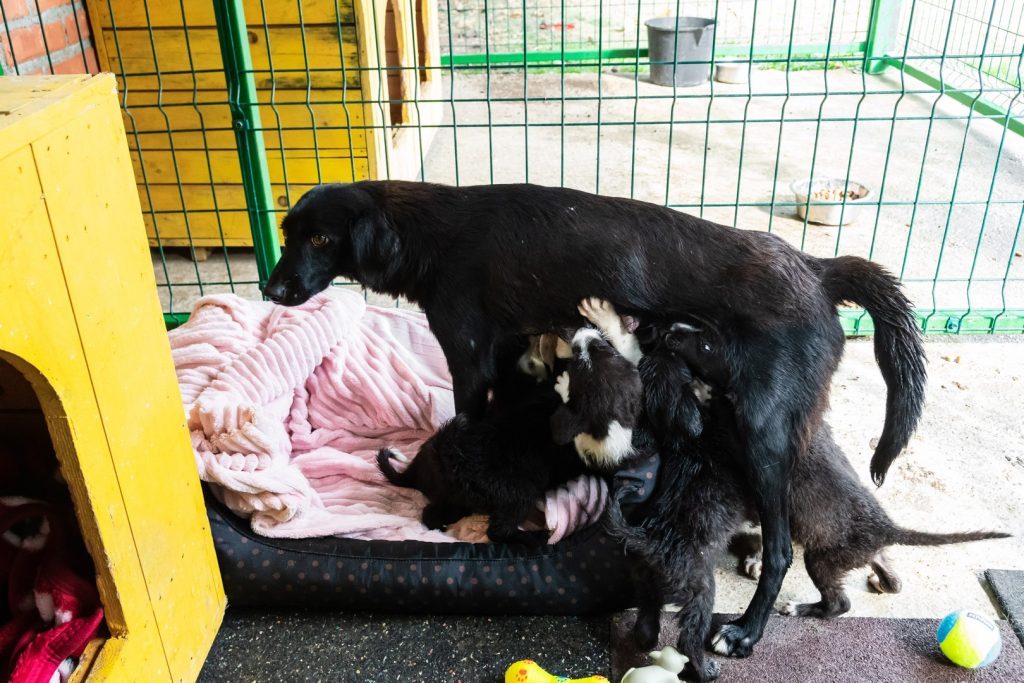 They were rescued from the “shelter of horror” in Târgu Jiu, where they lived in cold, filth, and fear. Umbra was so terrified that she couldn’t take care of her puppies, but now, with our help, she is starting to regain her motherly instincts and look after them.