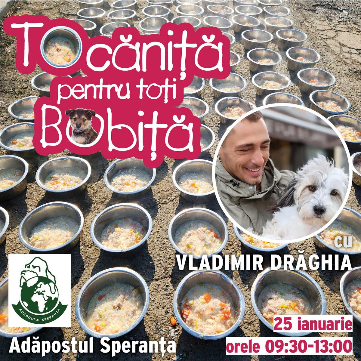 In order to encourage responsible adoptions, we organize a monthly event called ‘Stew for all Bobiță’, in which we cook a hot meal for the over 500 puppies in the shelter, together with personalities from sports, theatre, the film world or public figures from the social life.
