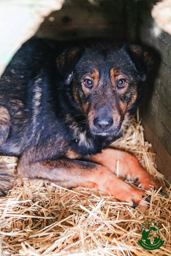 Mascul, 2 ani. Caracter: reticent, destul de sperios cu oamenii. A intrat însă în programul de dresaj ”Mesagerii Speranței”. Cu alți câini se înțelege foarte
