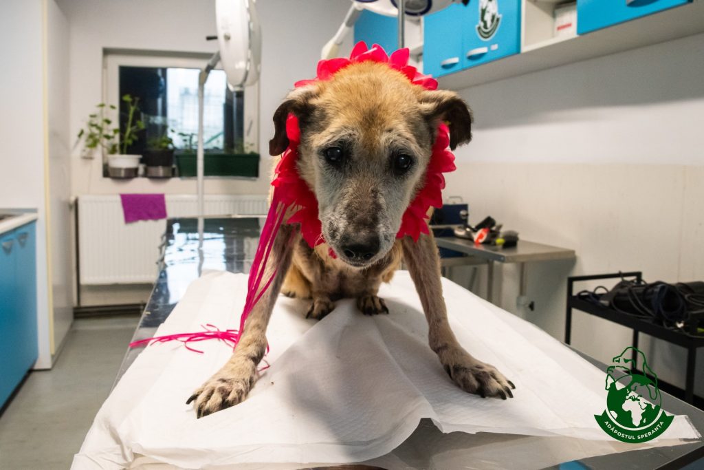 Hopa este o cățelușă cu nevoi speciale care necesită tratamente constante, pansamente și un cărucior nou. O adopție la distanță ar fi aur pentru ea, oferindu-i grija și sprijinul de care are nevoie zilnic.
